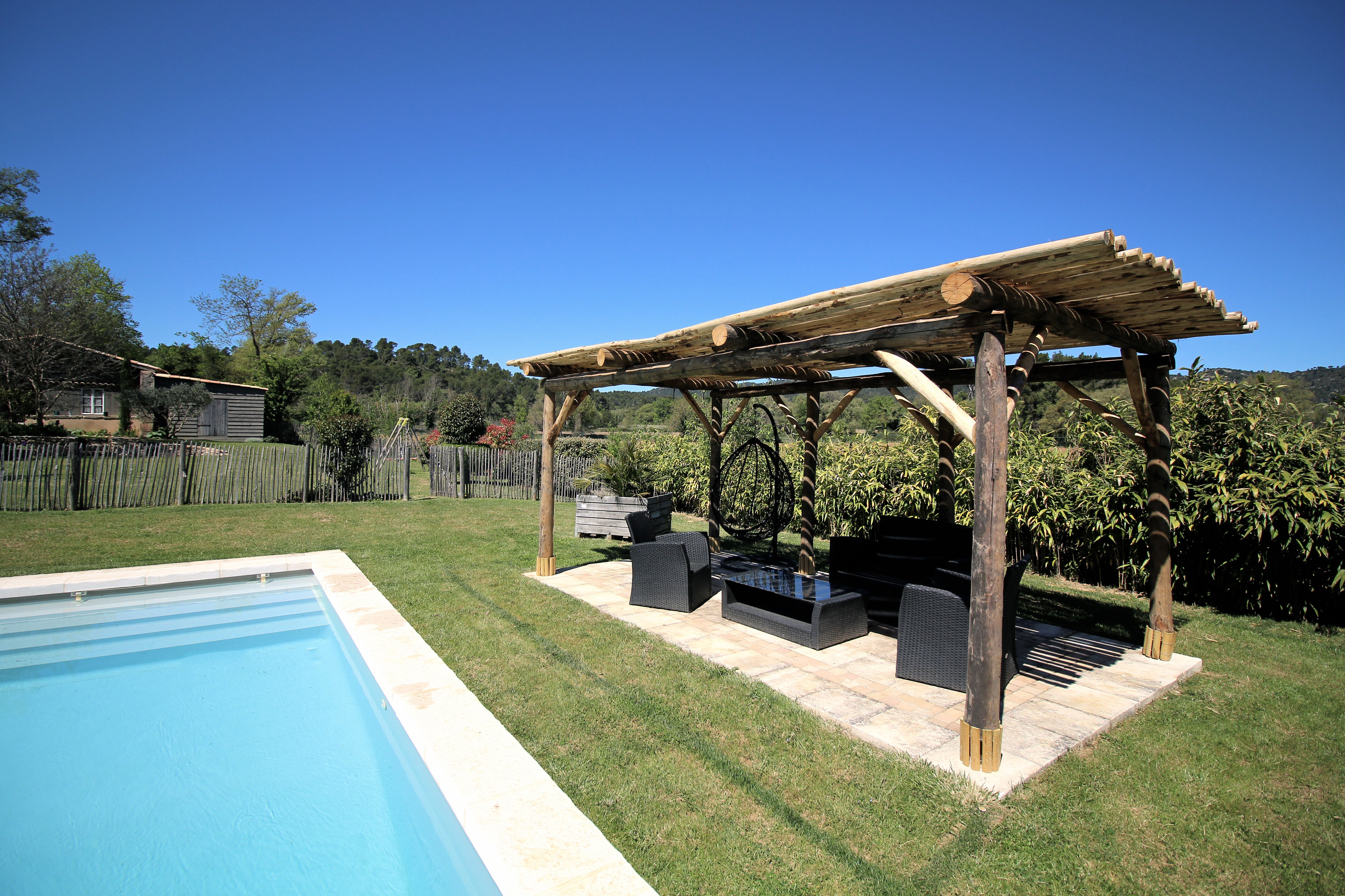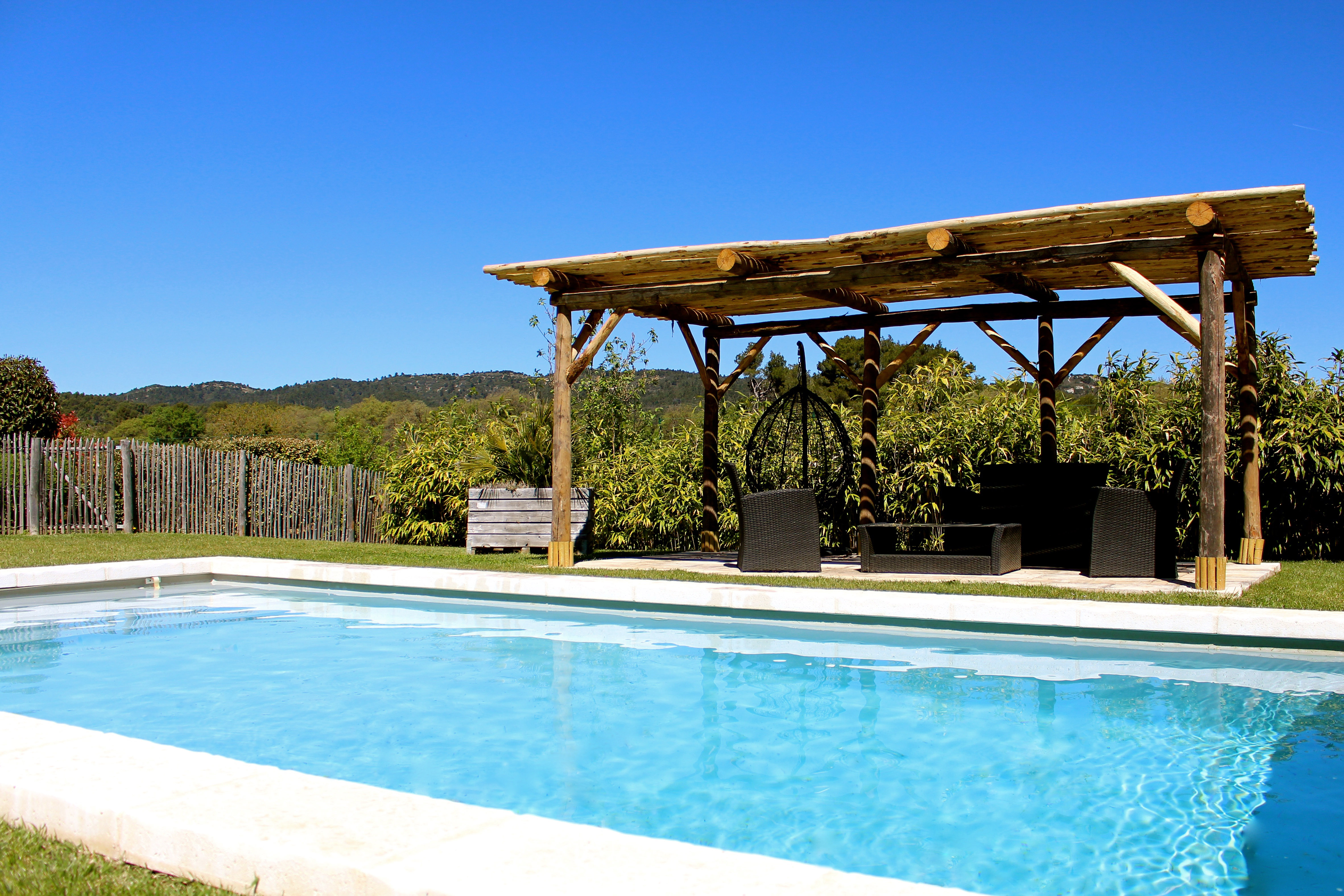 Piscine 4m X 8m avec escalier, petit bain et grand bain où il est possible de plonger.